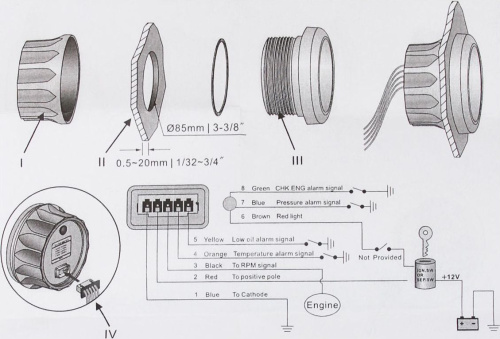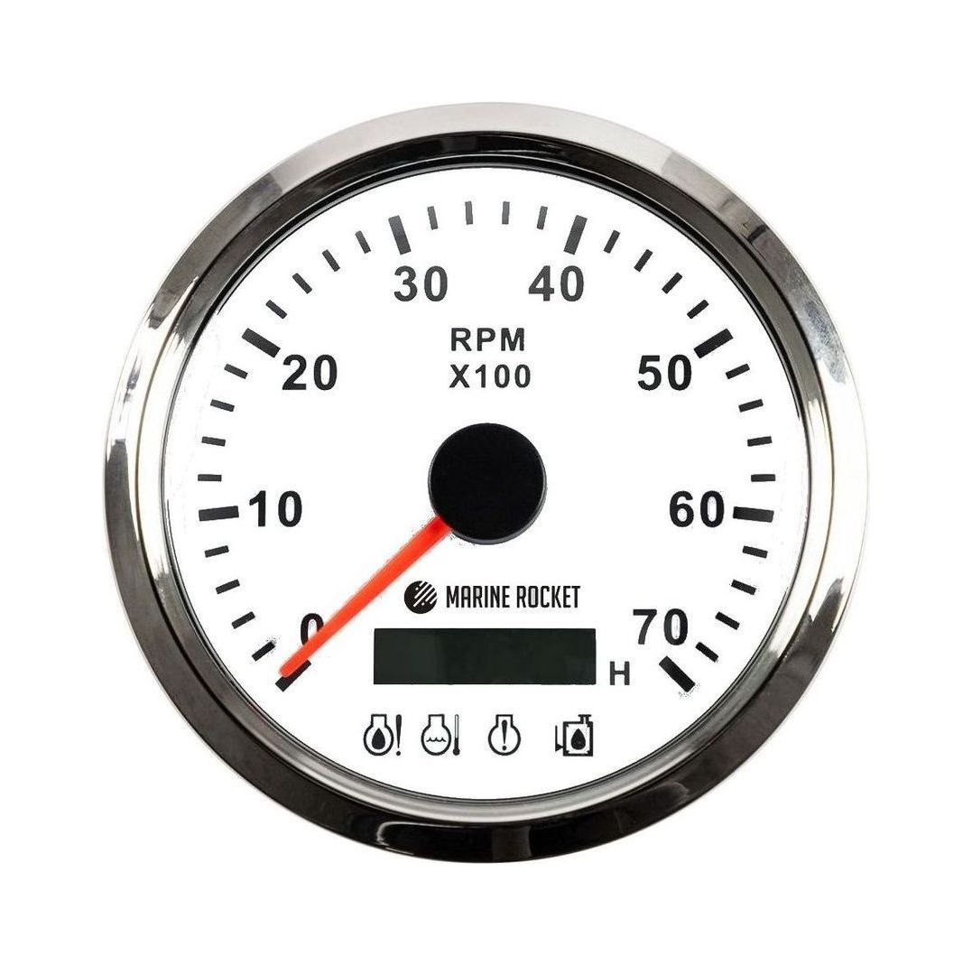 Прибор контроля оборотов двигателя (тахометр) 0-7000 об/мин (белый циферблат) Marine Rocket