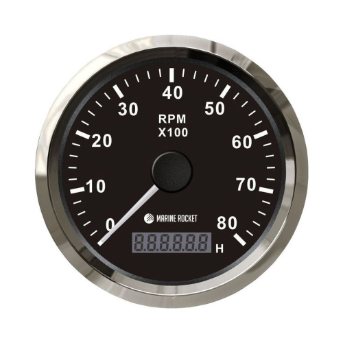 Прибор контроля оборотов двигателя (тахометр) 0-8000 об/мин. со счетчиком моточасов Marine Rocket