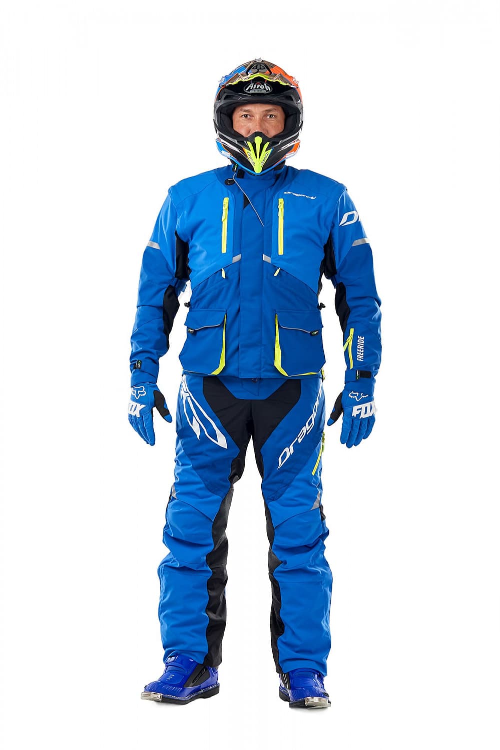 - Экипировка для катания на квадроцикле Куртка DRAGONFLY Эндуро Freeride DF Blue Yellow 2023