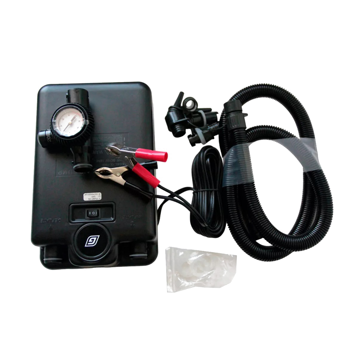 Аксессуары - Шланг 1,5 м с манометром, провод 5 метров с зажимом автомобильного аккумулятора