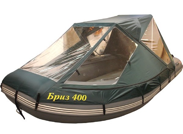 Тент для надувных катеров длиной 400 см. Предназначен для укрытия от неблагоприятных погодных условий на прогулочных надувных лодках во время отдыха на воде, туризма, рыбной ловли и охоты.