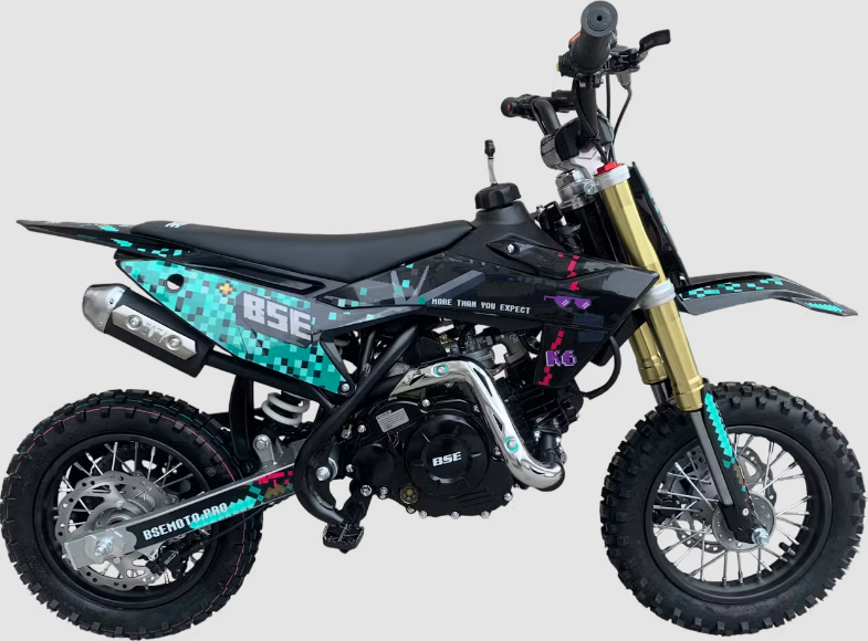 BSE K6 – детский мотоцикл для самых маленьких! Мотоцикл рассчитан на возраст 3-6 лет. Мотоцикл очень легкий, сухой вес всего 40 кг. K6 оснащен тяговитым 1 цилиндровым 60-кубовым мотором с воздушным охлаждением, данный мотор максимально неприхотлив. Электростартер и автоматическая трансмиссия с центробежным сцеплением заметно упрощает эксплуатацию мотоцикла. Яркий дизайн и внедорожный внешний вид, наподобие старших моделей BSE не оставит ни одного ребенка равнодушным.